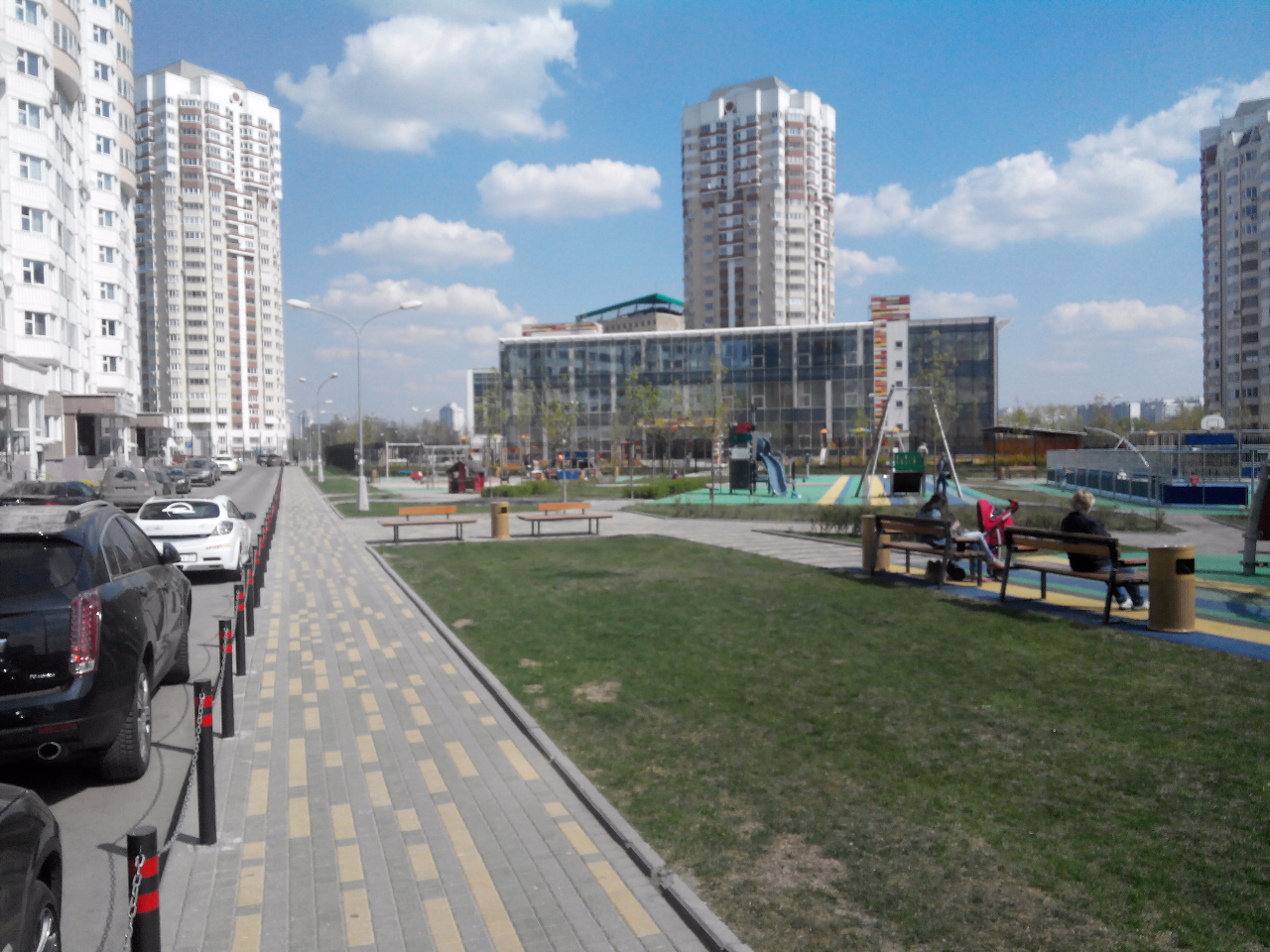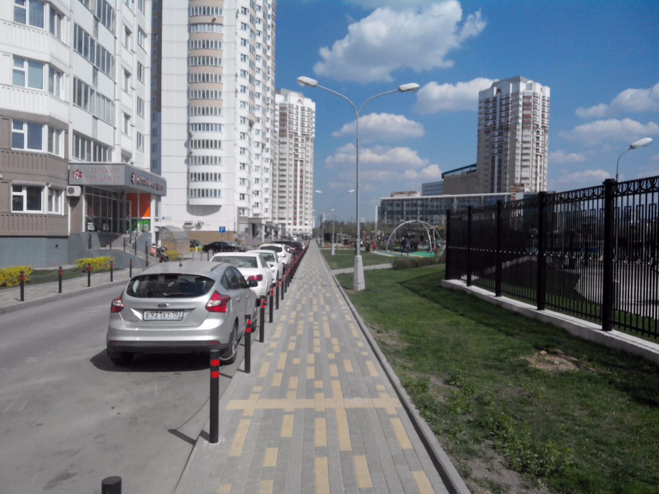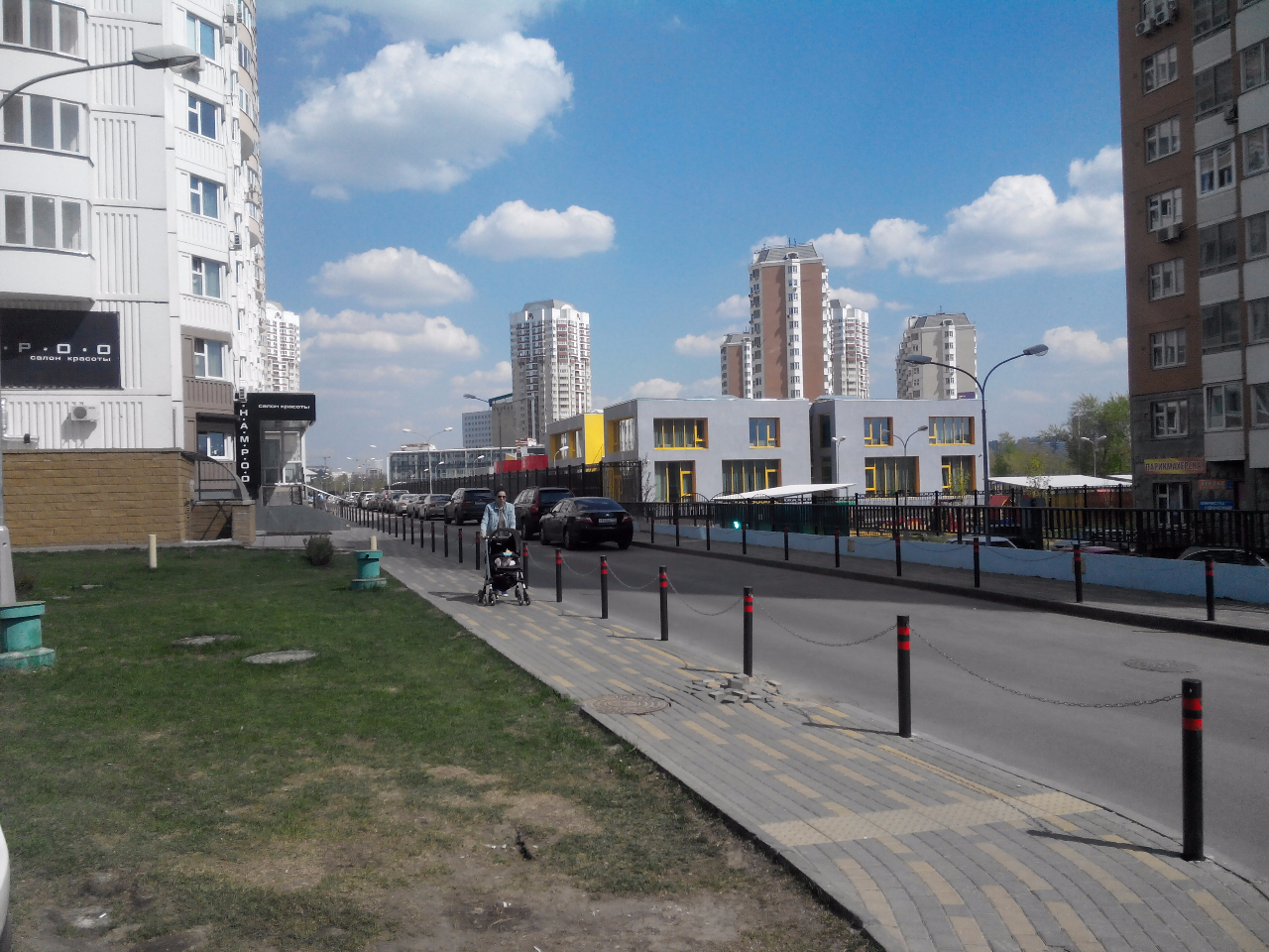 #20972На фото - тротуары и столбики в ЖК "Мичуринский" с другой стороны Большой Очаковской. На мой взгляд, не сильно уродуют пейзаж. О какой-то опасности для пешеходов говорить не приходится.QR_BBPOST Завтра сфоткаю столбики вдоль тротуара у соседнего дома и выложу на форуме. Выглядят очень мило, и машин на тротуаре не стало.