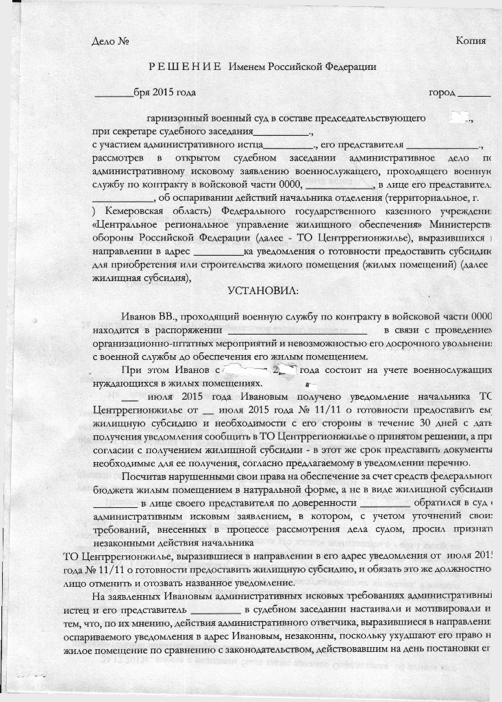 Выложите пожалуйста у кого есть положительные решения гарнизонных судов, относящихся к Западно-сибирскому окружному военному суди или его апелляционные определения по уведомлениям, кто не стоял на субсидию и избранное место жительства не менял или направьте в личку.