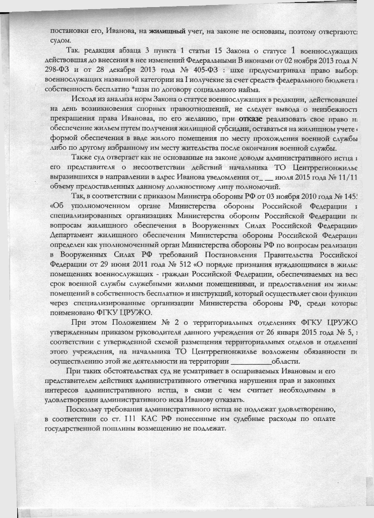 Но я даже не указывал, что это право на жилище у меня будет нарушенным, с чего суд вообще это взял. Я говорил, что право на жилище я не смогу реализовать в период военной службы из-за действий Центррегионжилье.