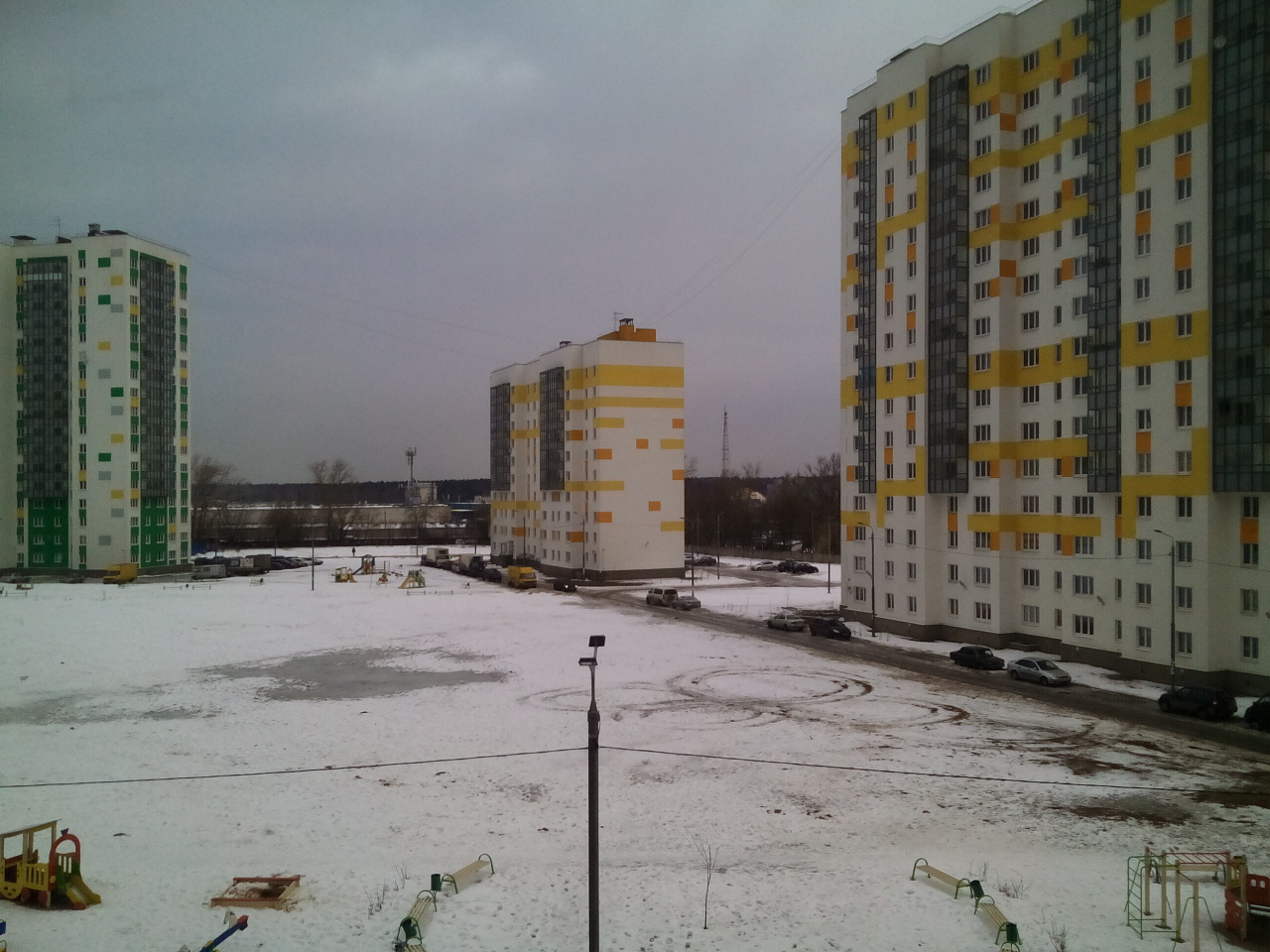 #13965Вам же ответили, что воды горячей нет ни в одном из домов, электричество есть, холодная вода есть. Лифты работают не везде. Домофонов изначально нет, если установлены, то за счёт жильцов. Тем не менее, процент заселения достаточно большой. Ещё одно фото с другого ракурса: