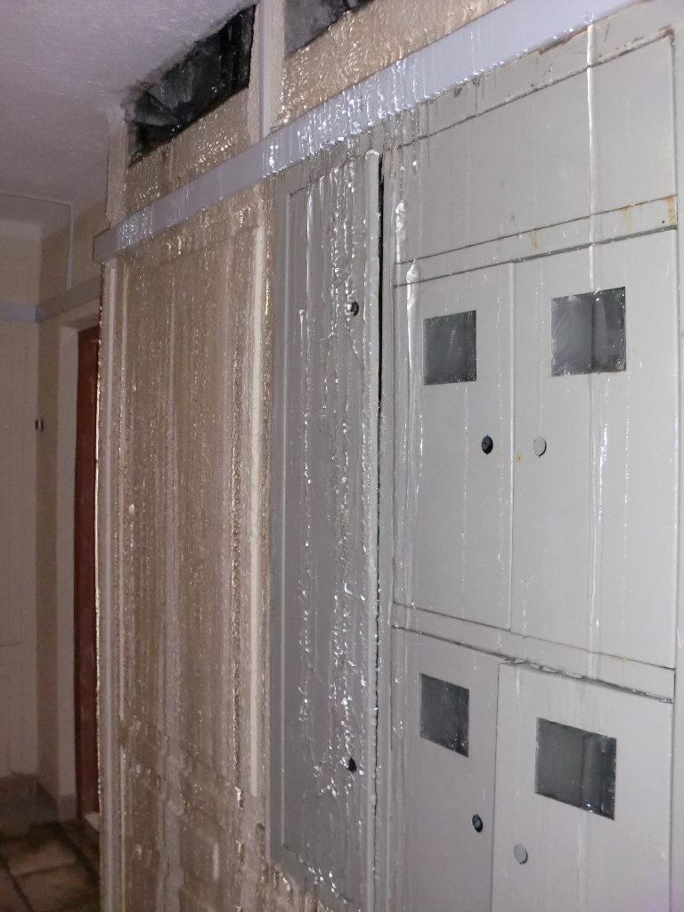 Этаж 19 - сплошной каток, на 15 этаже на полу местами лёд, электропроводка в сосульках. Признаков разморозки системы отопления на этаже не обнаружил