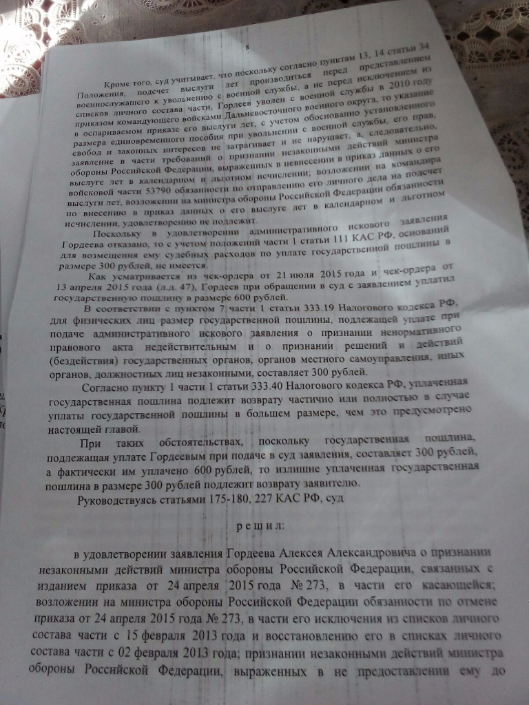 Впоследствии А.Ю.Кихов оспорил в судебном порядке действия начальника подразделения Службы организационно-кадровой работы Управления кадров ФСБ России, передавшего данную жалобу на рассмотрение начальнику Управления ФСБ России по Республике Дагестан. Решением гарнизонного военного суда, оставленным без изменения судом апелляционной инстанции, А.Ю.Кихову в удовлетворении его требования было отказано. При этом суды исходили из того, что решение вопроса о предоставлении отпуска относится к компетенции начальника Управления ФСБ России по Республике Дагестан.