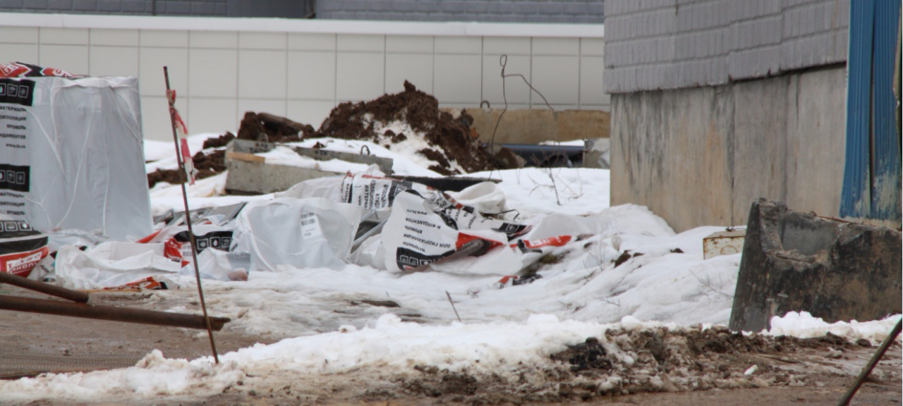 - Гидроизоляционный материал перед кпп- осталась одна упаковка - в декабре на том же месте было 2. Значит или растащили, либо по каким то чудо технологиям клали в морозы и в мокрую погоду)