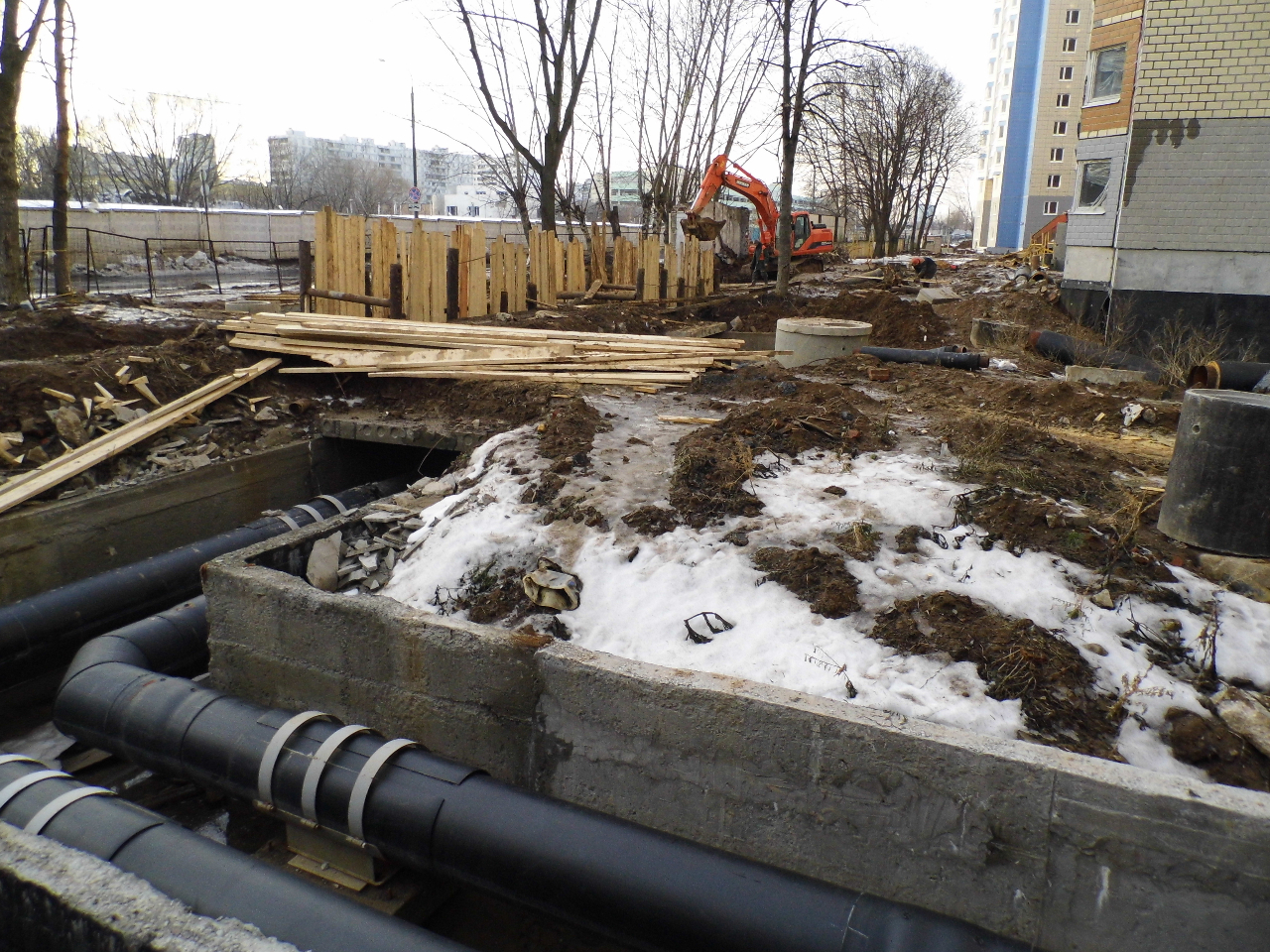 Патриот 61 снимал ролик с краном, это подтягивают ветку канализации 12,13 корпусов к магистральному колодцу.
