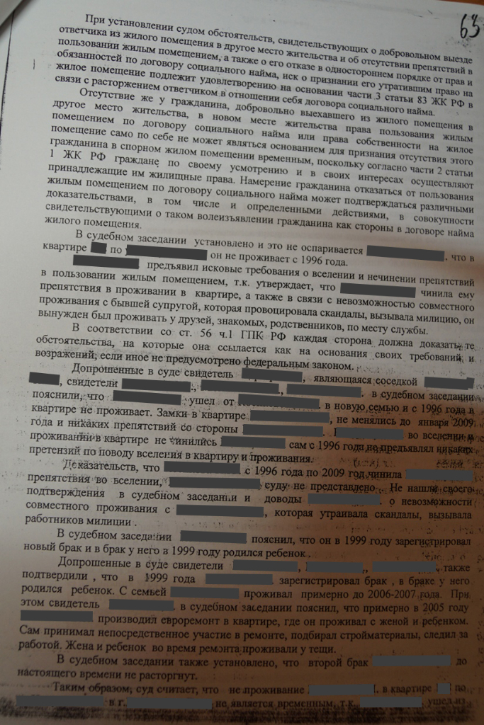 А по свидетелям с ее стороны мне вообще неясно, откуда они знали, куда именно от съехал- к новой жене или не к новой жене. Откуда также им было известно о том, предпринимал он попытки к вселению или не предпринимал. То, что он топором дверь не выбивал и соседи за этим занятием его не застали еще не говорит о том, что он попыток не предпринимал....