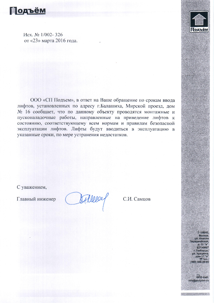 Ответ конторы, проводящей работы выкладывал ранее г. Балашиха, мкр. Салтыковка, Мирской пр-дQR_BBPOST он сказал что через три дня должны принимать лифты в эксплуатацию