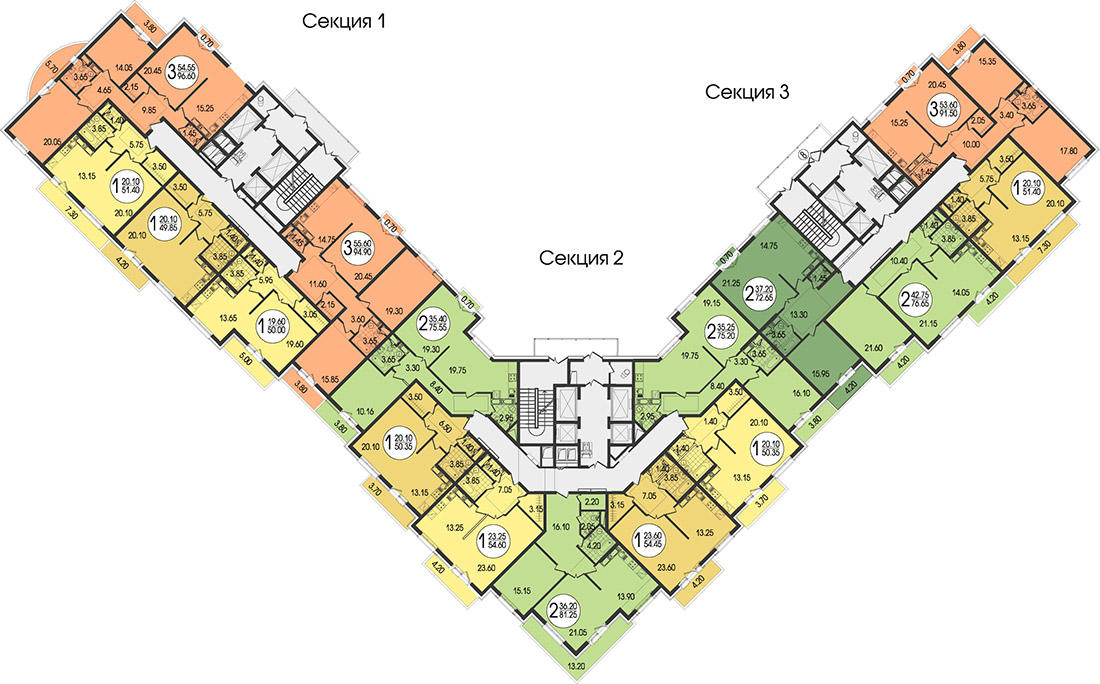 - трех 25-этажных жилых домов по индивидуальному проекту (для