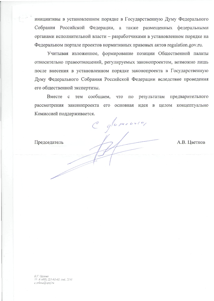 Спасибо.Мне дали добро на размещение заключений на нашу инициативу.