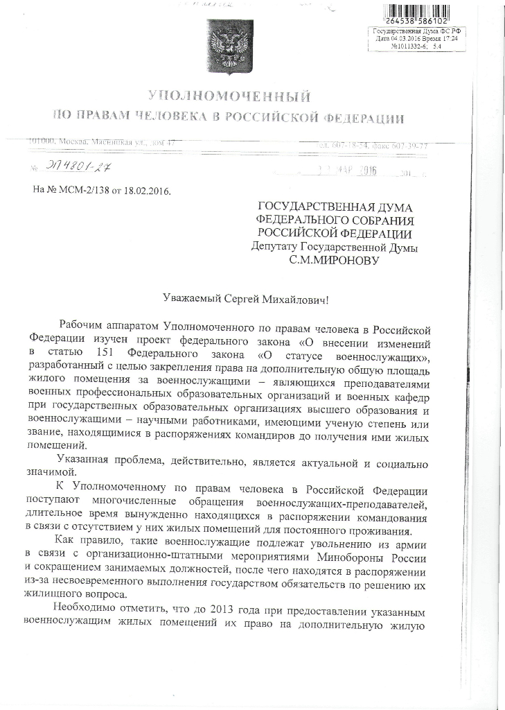 Плюсом ответ от Озерова из СФ поскольку точно такой же пакет документов был направлен туда