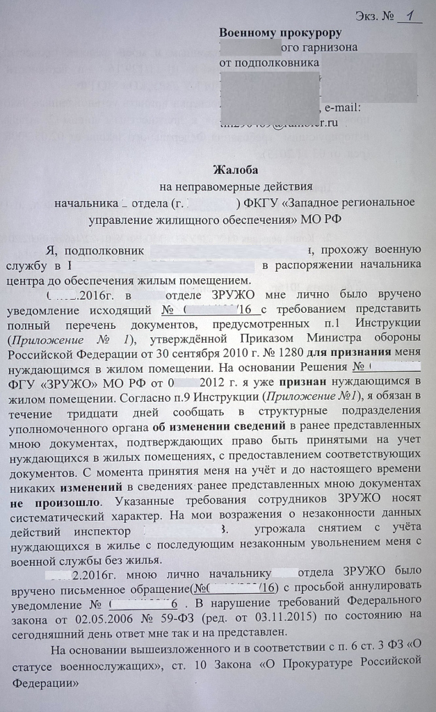 QR_BBPOST В принципе, это жалоба является заявлением в суд на обжалование неправомерных действий начальника ФГКУ "ЮРУЖО" по требованию справки на сдачу занимаемого ЖП до принятия решения о предоставлении ЖП по извещению (ИМПЖ)