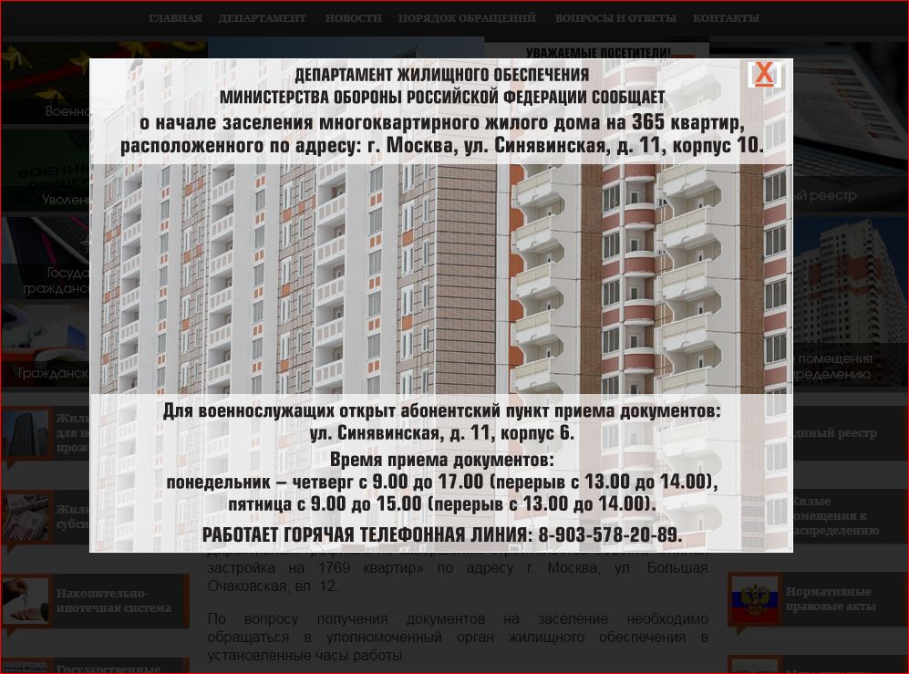 #25582Только сейчас сделал снимок. Вошел на главную страницу Минобороны http://mil.ru/index.htm и далее "Жилье военнослужащим". Вот что увидел.