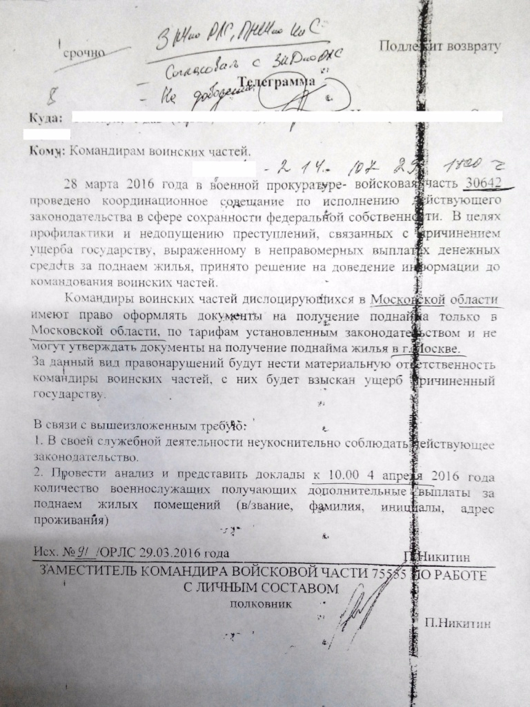 Наши отцы - вышестоящие командиры составили такую телегу, и теперь не дают снимать жилье в мск (наша часть в 5 км от первопристольной, и жилье на съем стоит столько же). Соответственно контрабасы взвыли - теперь компенсируют только по 3600 в месяц (не платили с начала года), а комнатухи по 16000 снимают. Куда посоветуете копать сначала?