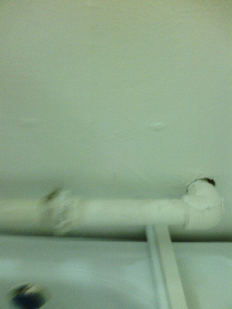 Дыры в местах прохода труб через шиферную перегородку не заделаны (гарантированы отличная слышимость и сквозняк). Даже имитацию заделки никто изобразить не пытался: