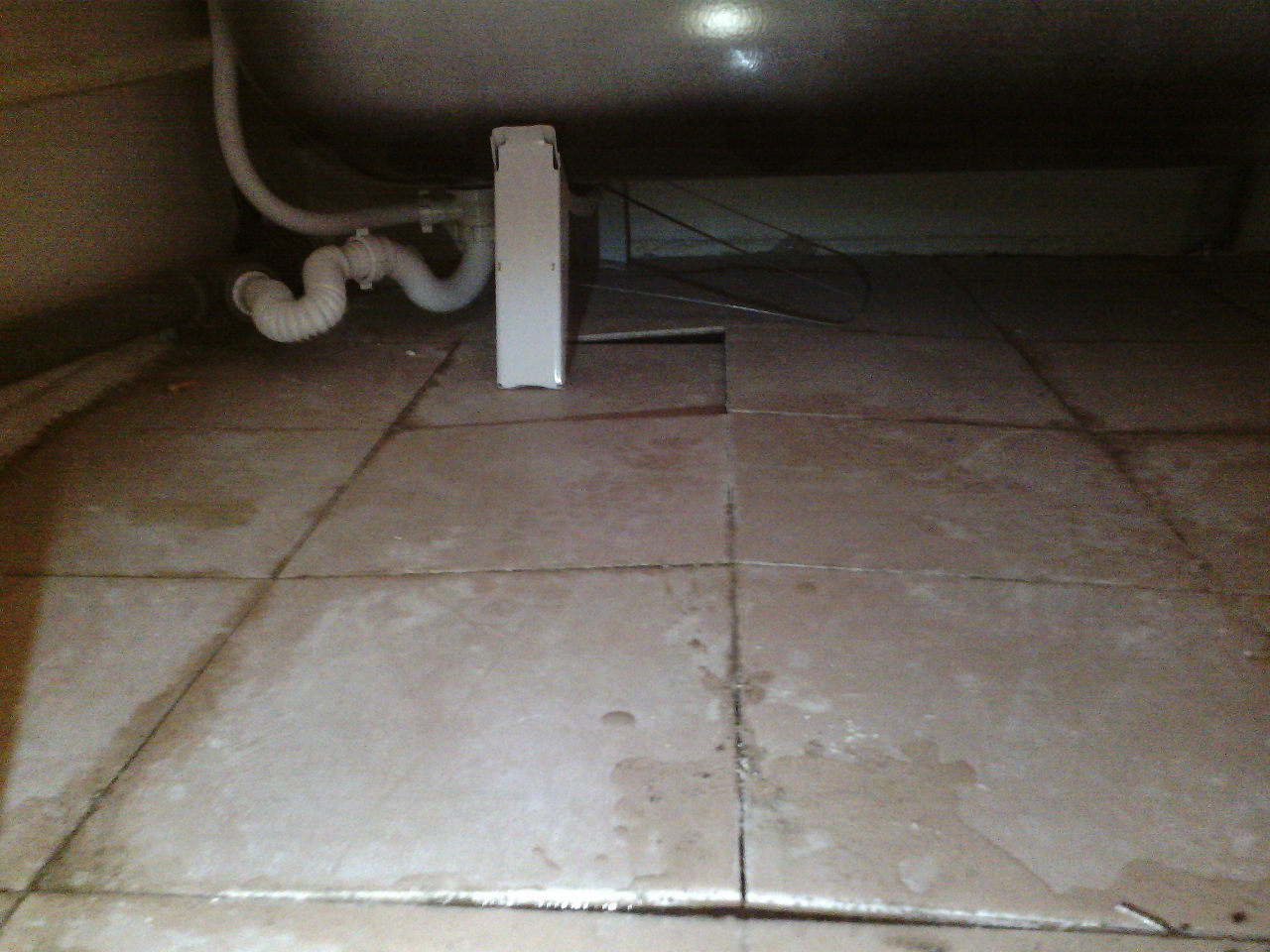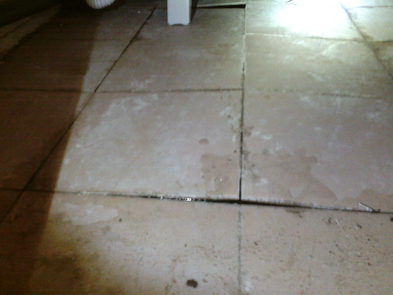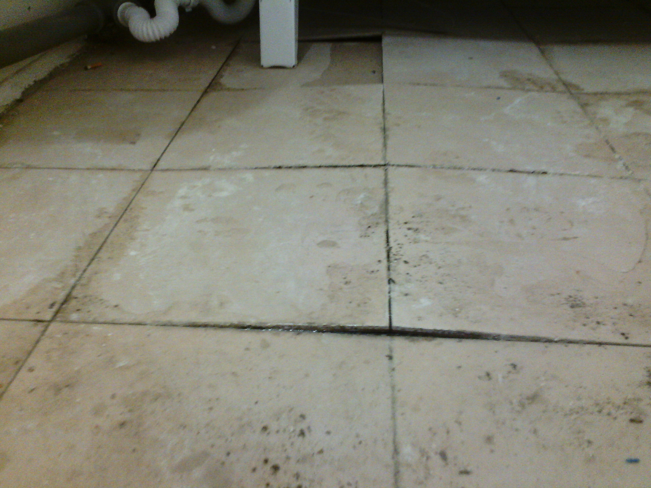 Напольная плитка в ванной из-за некачественной укладки и постоянных заливов водой встала "домиком":