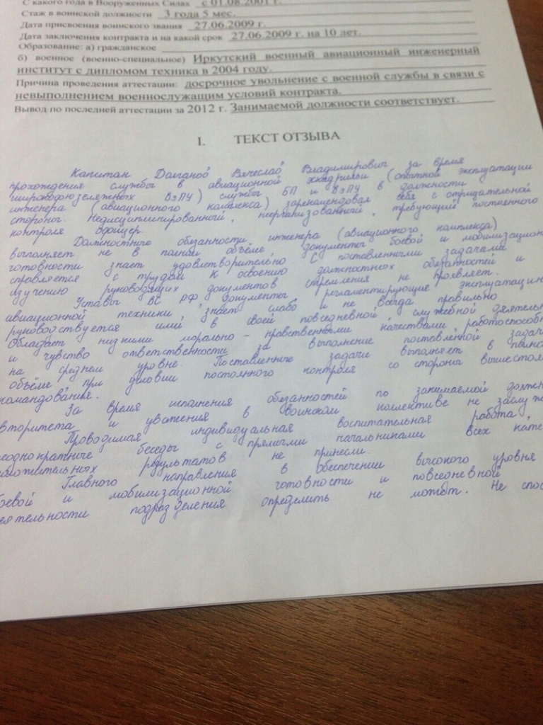При подготовке к аттестационной комиссии, на основании статьи 3 приказа МО РФ от 29 февраля 2012 г. N 444 «О порядке организации и проведения аттестации военнослужащих, проходящих военную службу по контракту в Вооруженных Силах Российской Федераци» я ознакомился с текстом отзыва.