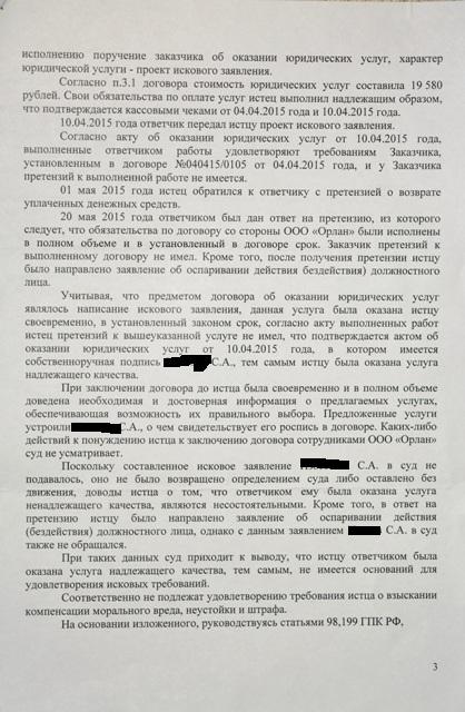 Военнослужащий обратился к разрекламированной юридической фирме на бесплатную консультацию. Хотел оспорить приказы о привлечении к дисциплинарной ответственности. Несмотря на то, что сроки для оспаривания приказов давно прошли, ему там пообещали, что дело у него выигрышное, взяли почти 20 тыс. рублей (без представительства в суде, только за составление заявления) и составили исковое заявление в ГВС (на тот момент КАС РФ еще не действовал). Написали лажу. В ГВС иск не приняли. Дальше военнослужащий судился с юристами и дело проиграл.