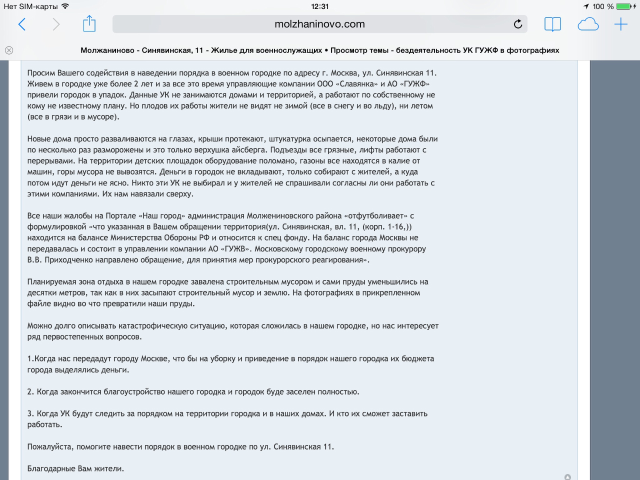 Примерно так. Но обязательно в письме подписи нескольких жильцов 2-5, нормально пойдет. Мы уже писали.