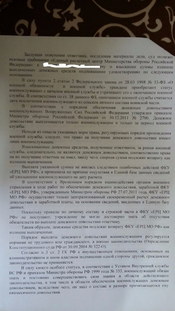 Судья списал исковое заявление один в один , не проводя всестороннего анализа. Даже если суд установил что это не д/ довольствие оно было перечислено на мой счет как д/довольствие./