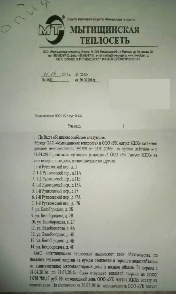 У них в эти месяцы не было договора с Августом. Он только с 1 апреля появился.QR_BBPOST Хотя непосредственно Теплосеть выставляла нам долг за теплоэнергию за январь-март месяцы непосредственно
