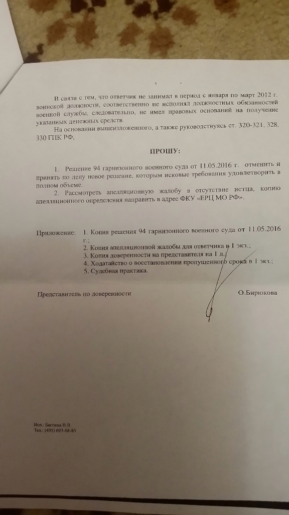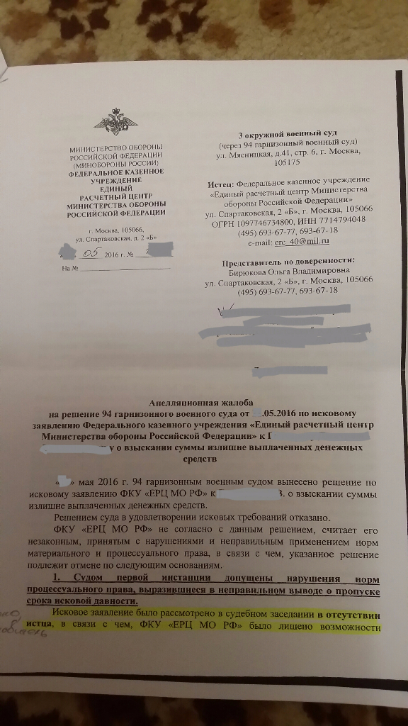 #2717Мое дело по переплате рассмотрено в окружном суде, вердикт: ЕРЦ ОТКАЗАТЬ, оставить в силе решение гарнизонного суда (применен срок исковой давности). Теперь ждать наверное следующей апелляции, далее что-верховный суд?