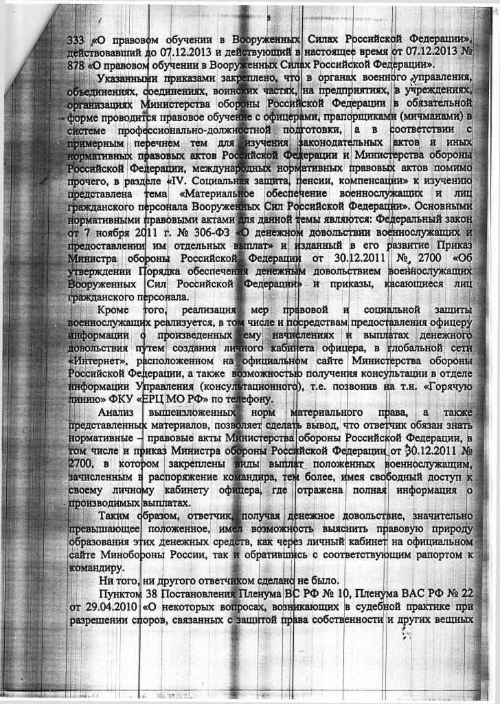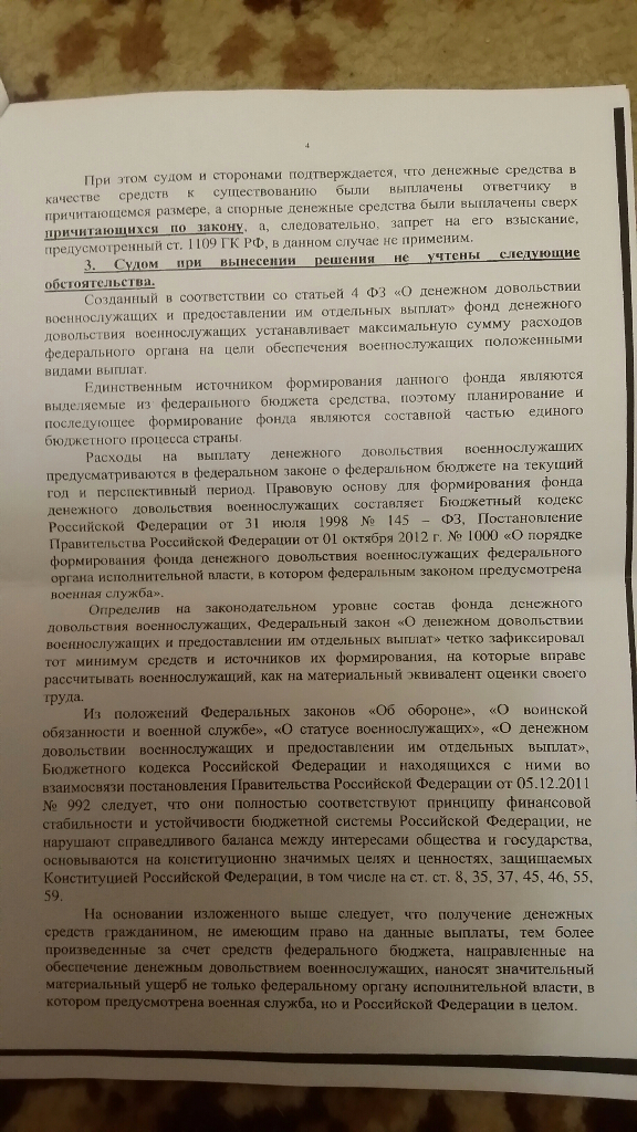 И что раздражает, что суды идут по пути меньшего сопротивления, принимая сторону МО ... И пофигу им твои доводы про 1109 ГК, про требования приказа № 2700 о том что денежные средства невозвратны, даже если право на них в последствии военнослужащим утрачено, и то что факт счетной ошибки не нуждается в правовой оценке....