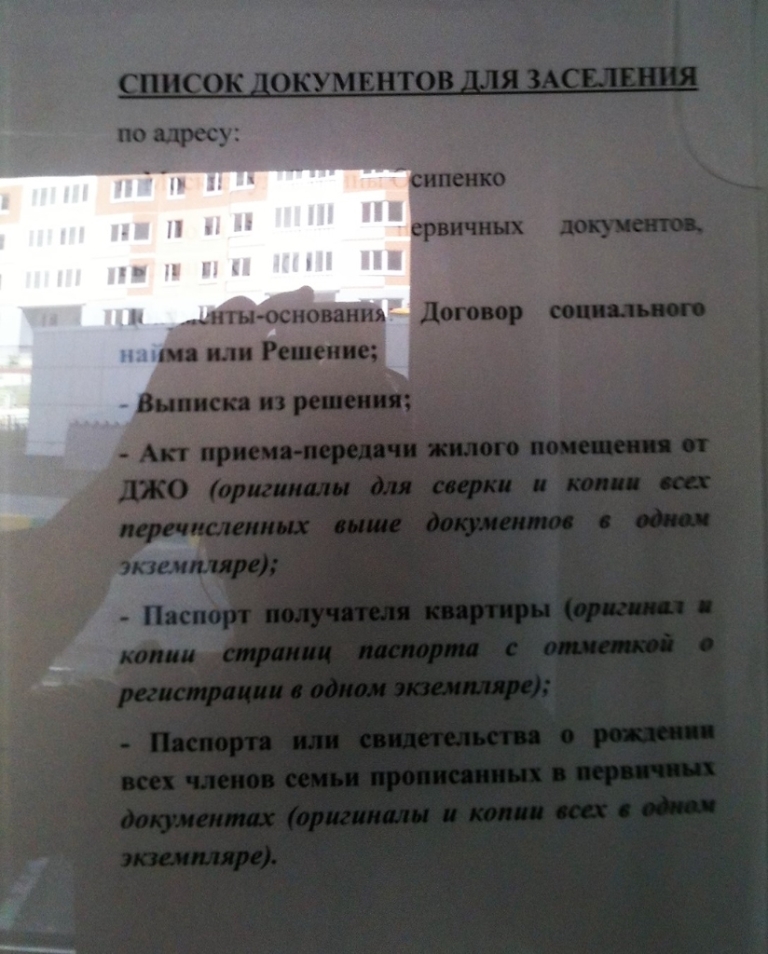 1. Идите принимать квартиру в абонентский пункт в доме № 8