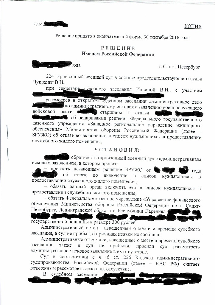 В марте 2016 года получает решение о предоставлении ему и дочки ЖС но без учёта его супруги.