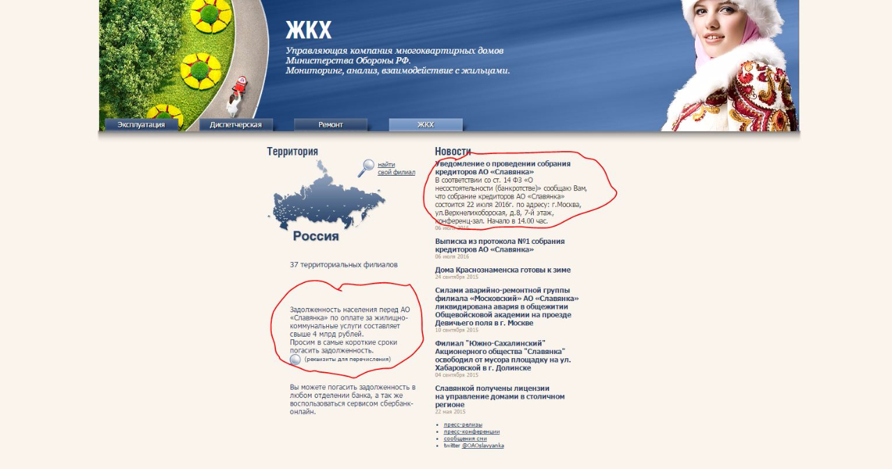 #2504Славянка банкрот. А сейчас, чтобы рассчитаться с кредиторами, скорее всего будет обращаться в суд на жильцов, не рассчитавшихся с ней за коммунальные платежи.
