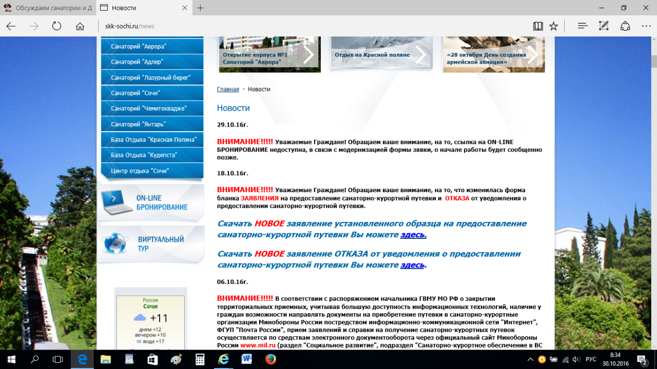 #2185перехожу по ссылке, никакого объявления не вижу. может не там смотрю?Информация о порядке и правилах оформления путевок в санаторно-курортные организации Министерства обороны Российской Федерации