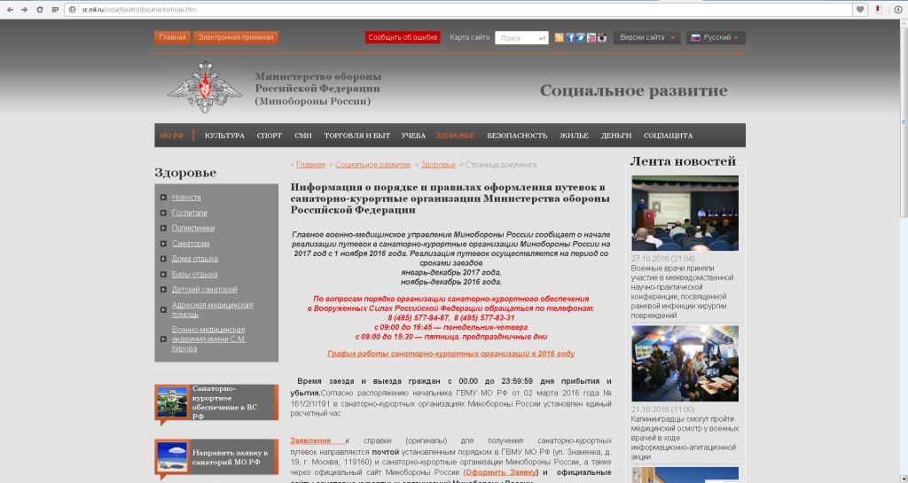 Информация о порядке и правилах оформления путевок в санаторно-курортные организации Министерства обороны Российской Федерации