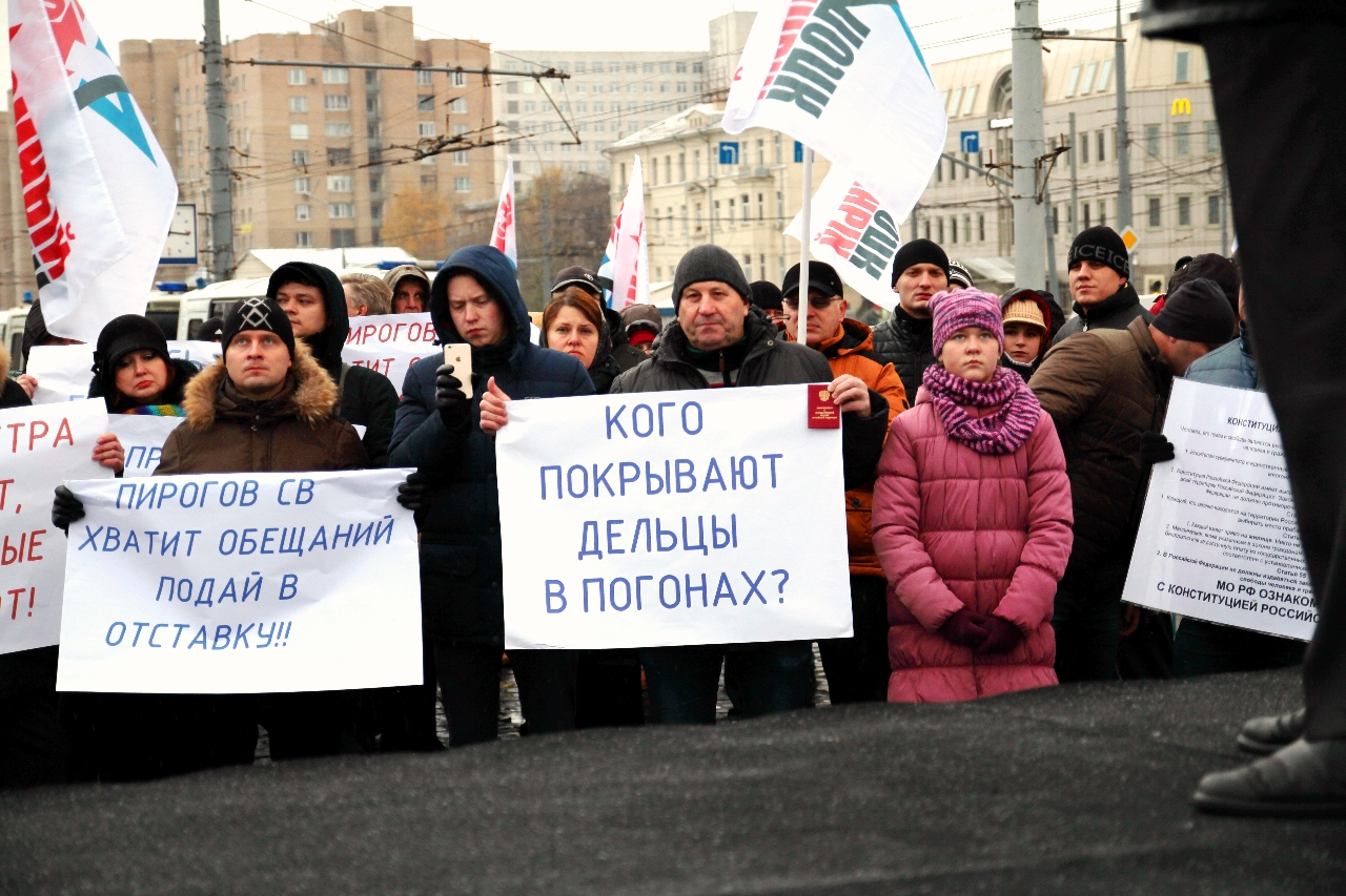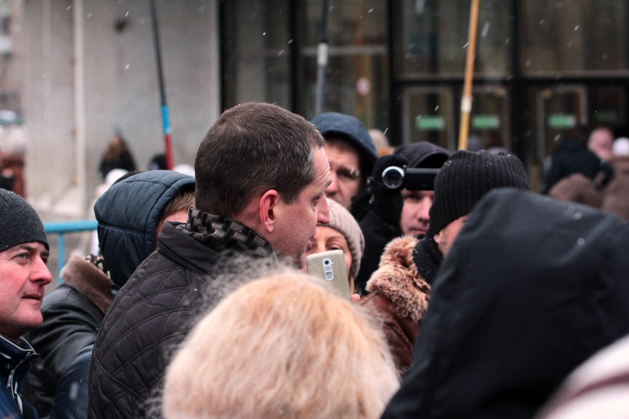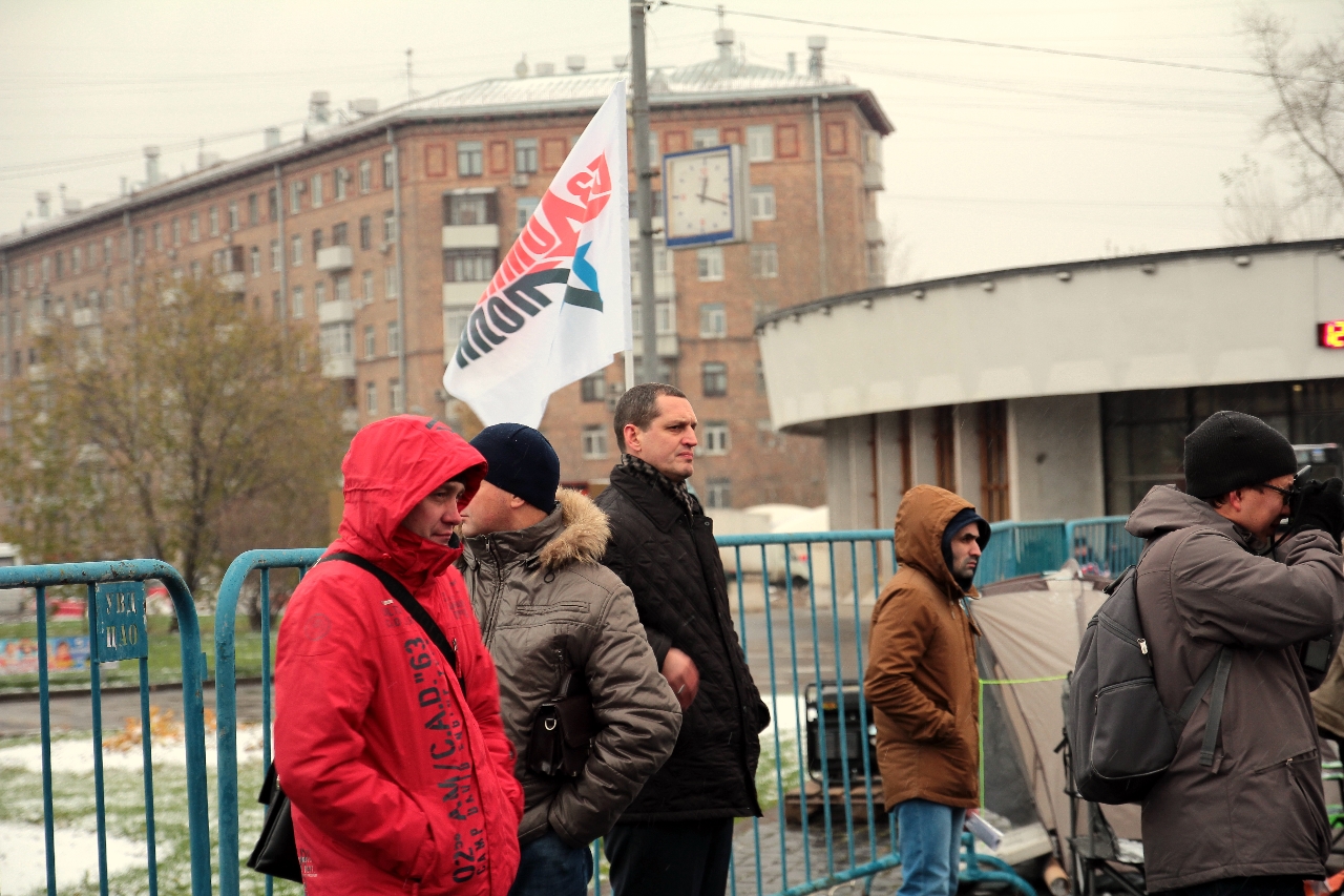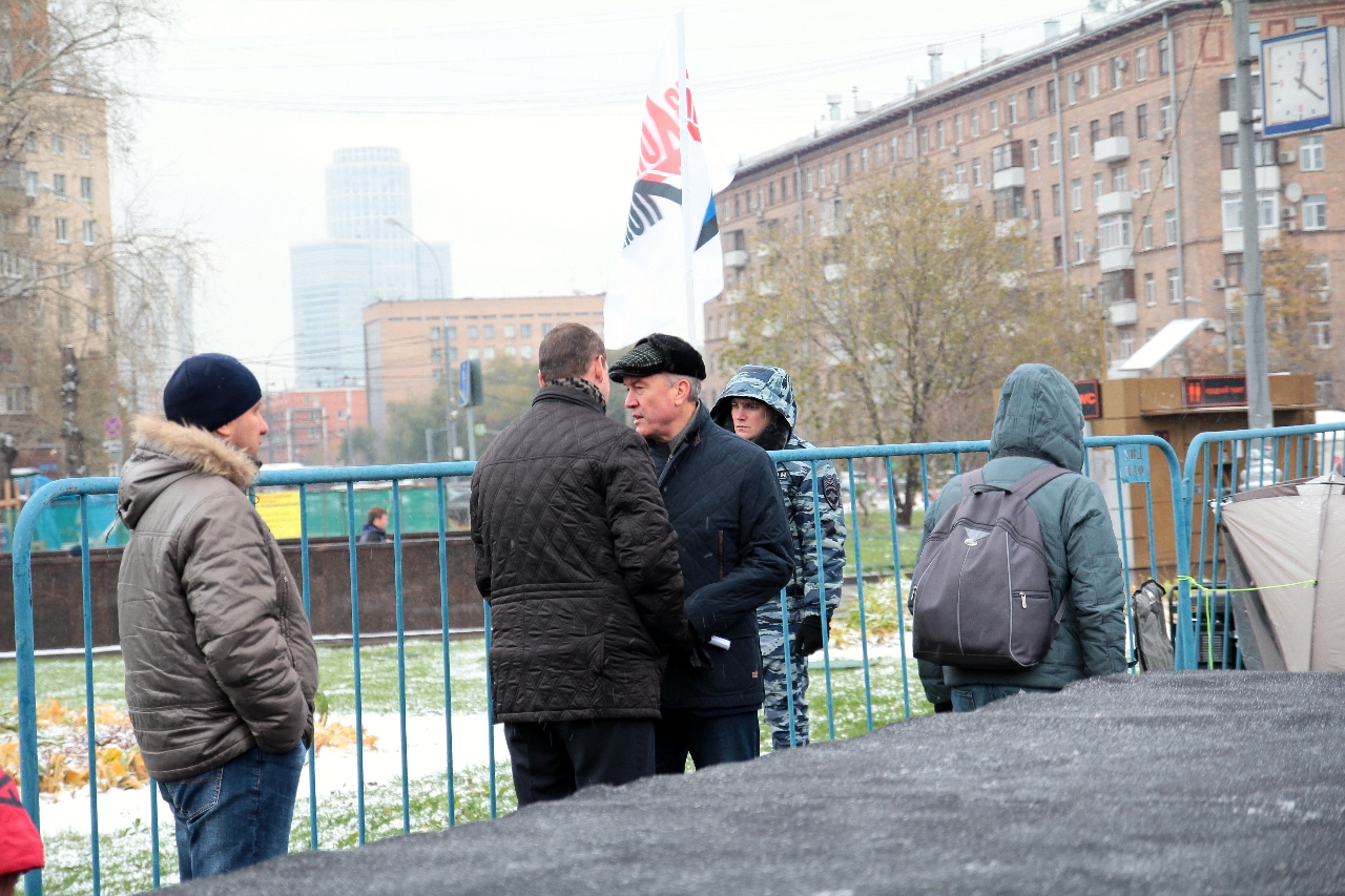 " Надо сказать, что самопровозглашенные «бомжи» выглядят довольно прилично. Среди участников митинга особенно выделялась женщина, одетая в норковую шубу. Жителя столицы норковой шубой не удивишь, но всё же странно видеть её на человеке, который считает себя «бездомным»