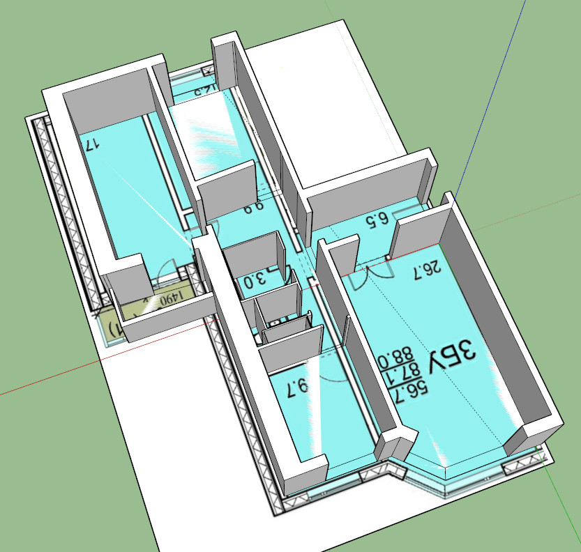 #26839Если кому интересно, наложил план по бумагам и фактические размеры. Невооруженным глазом видно, что по полметра с каждой внешней стороны не хватает. Реальный повод задуматься за что доплачивали.