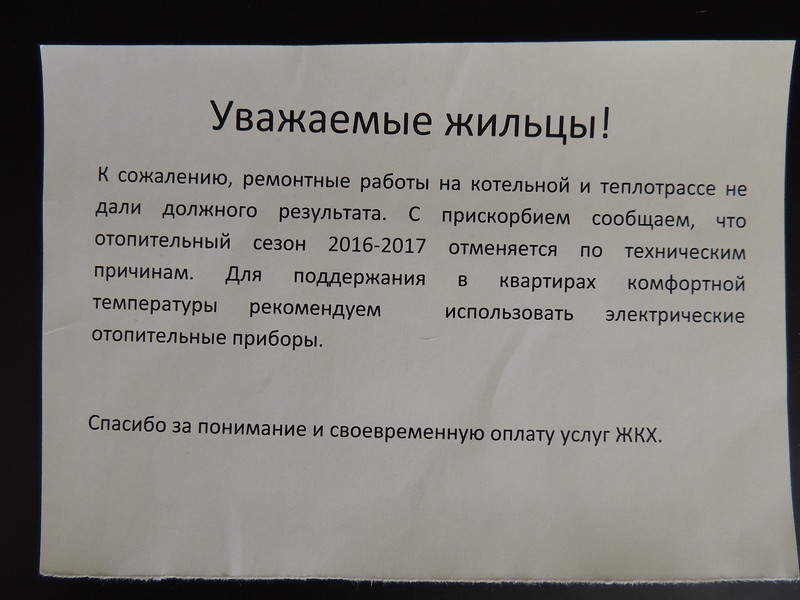 Творят беспредел!QR_BBPOST Вы будете смеяться "не верить в каменный век", но именно после этого объявления нам и отключили отопление. Точнее, не "нам", а "Славянке", а там жили мы, с детьми.