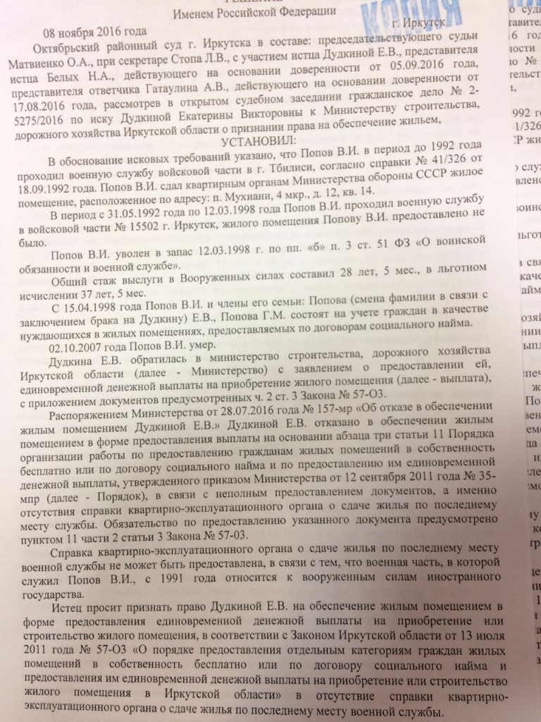 - служебная квартира получена 8 лет назад, от в/ч по крайнему месту службы, в закрытом военном городке;