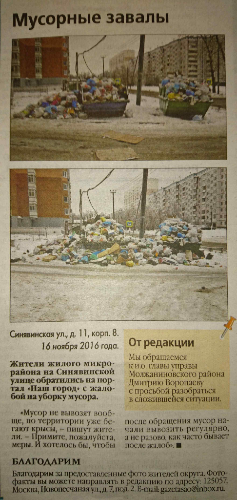Наш микрорайон снова "прославился" - в сегодняшней газете "Север столицы"