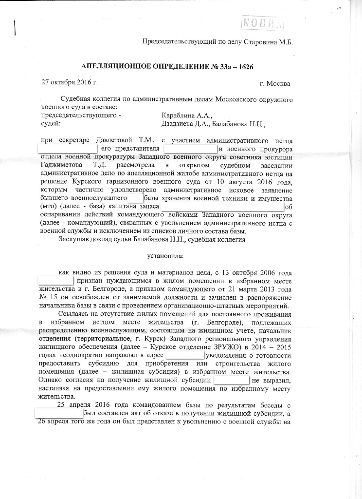 #5647Выкладываю как и обещал апелляционное решение МОВС в дополнение к своему посту Уведомление о жилищной субсидии (Приказ от 17.06.2015 №333)