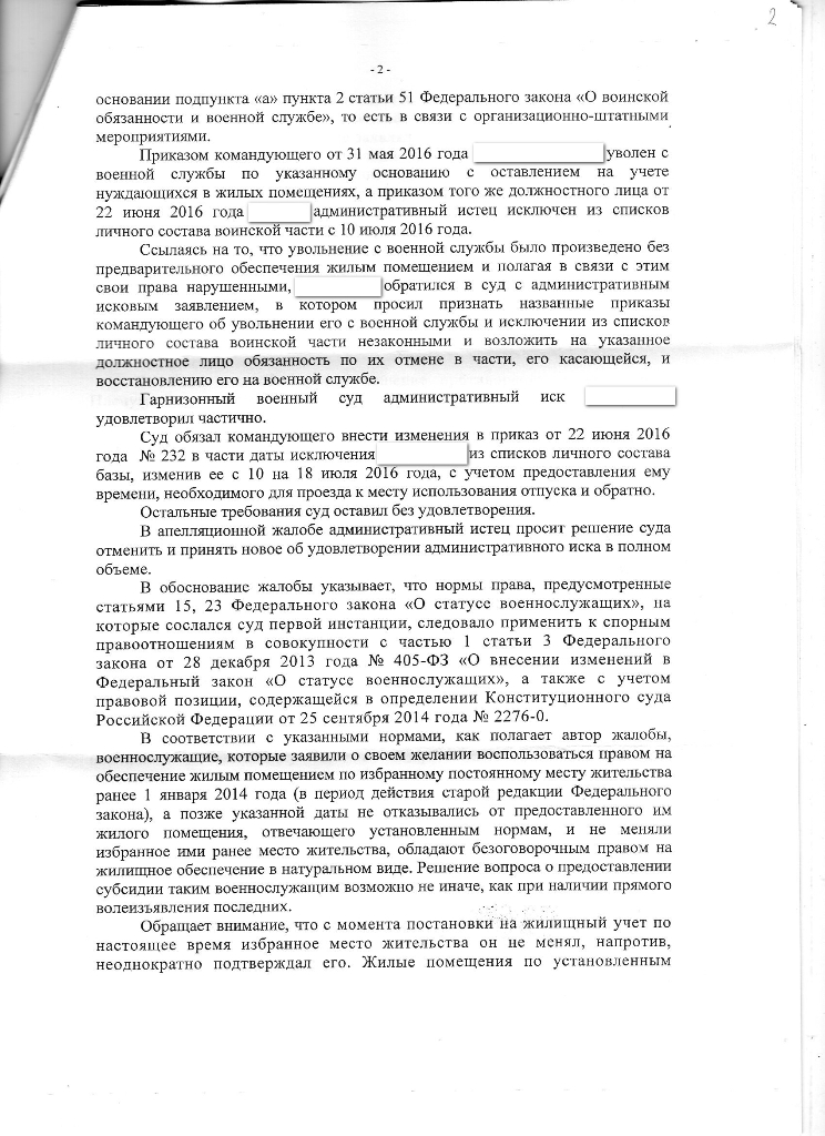 При этом буквально через неделю после этого судья Сокерин который в составе коллегии пришёл к указанному выше выводу отказал нам в передачи кассационной жалобы когда военнослужащий оказался в 2012 году от предлагаемых ЖП за которые нужно было доплачивать. Так что вот такие дела.