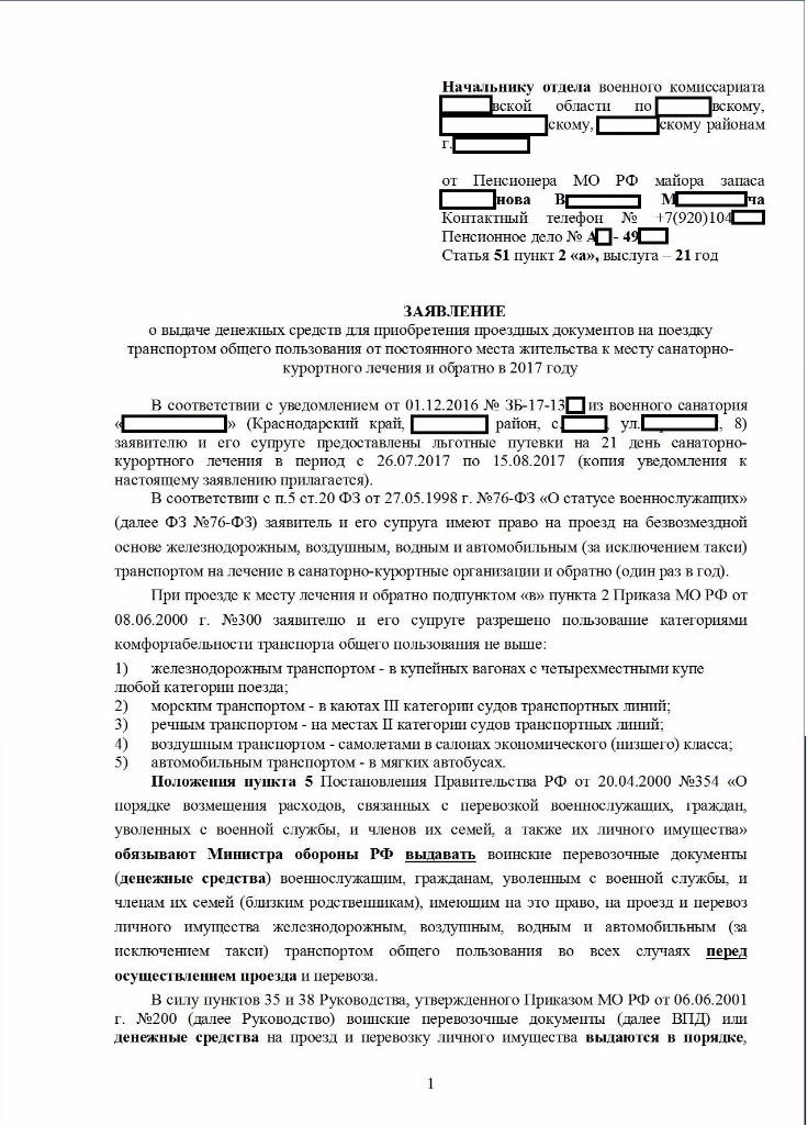 #2853Товарищи военные пенсионеры, пролистал всю ветку но так и не нашел ответа на вопрос. А вопрос вот в чём. Возможна ли компенсация за проезд, пенсионеру МО РФ и члену семьи, к месту СКЛ, если проезд осуществляется на личном автотранспорте ? Если да, то какова процедура ? Есть ли у кого подобный опыт ?