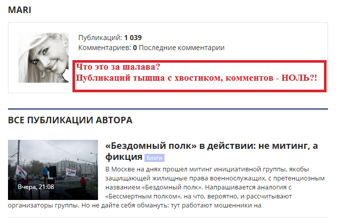 #31875"....Участие в митинге оплачивается: 400 рублей за час или 800 рублей за два часа....."Везде пишет один автор . делая небольшие измененияВот здесь нас конкретно дерьмецом полили https://mpsh.ru/17604-bezdomnyy-polk-v- ... kciya.html