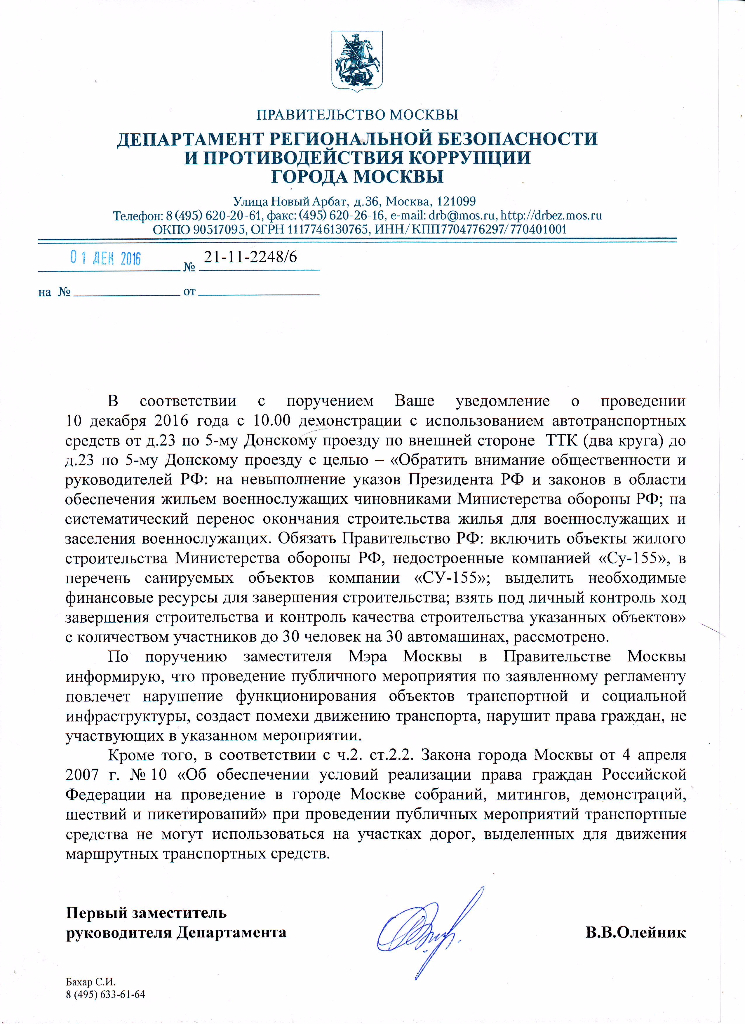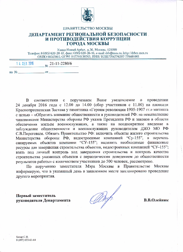 #32609А Вы задайте вопрос - где и в какое время в Москве есть возможность, например во второй половине января 2017 г. провести митинг с указанной повесткой, для того, что бы своевременно подать заявление.QR_BBPOST Мы уже получили три незаконных отказа за декабрь и уже направили жалобу на эти незаконные действия в прокуратуру.