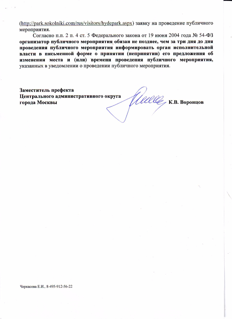 #4Судя по документам разрешён ПИКЕТ! Не надо экспериментировать, это может плохо закончиться, как для организаторов, так и для участников мероприятия. Ставя себя "вне закона"- глупо ждать его исполнения и "контролирующие" это прекрасно знают и грамотно пользуются( в т.ч. СМИ, полиция, РГ)Может митинг с элементами пикета, может пикет с элементами митинга. Эта площадка своеобразная и специально предназначенная для массовых акций. Предварительно администрация ПКиО разрешила ....QR_BBPOST Уточните, пожалуйста, если возможно, в каких рамках будет проводиться "массовое мероприятие": пикет, митинг и т.п.?