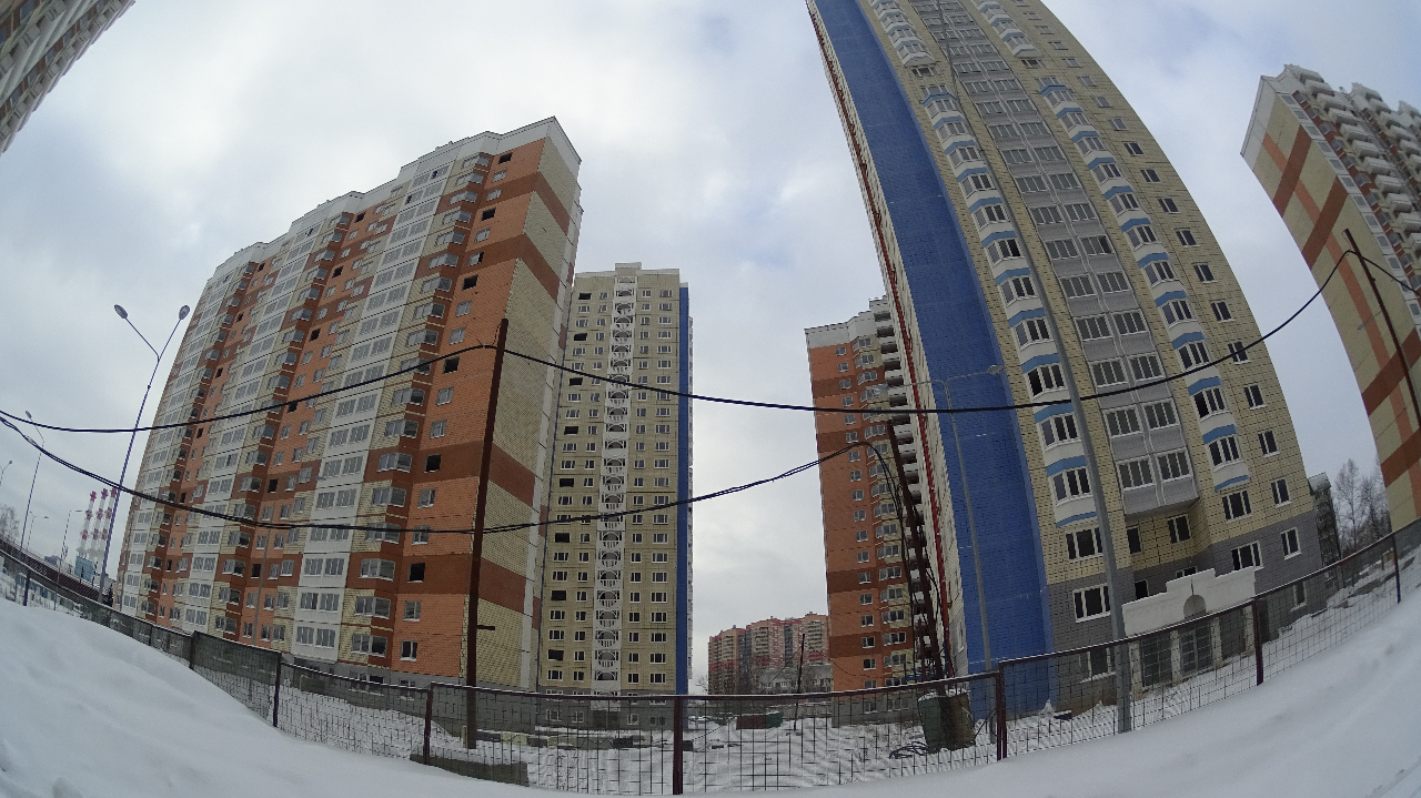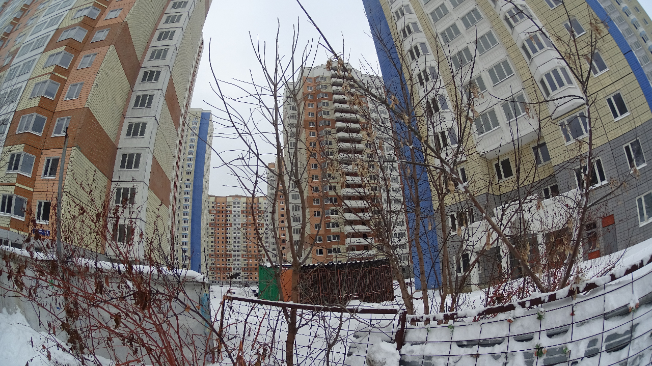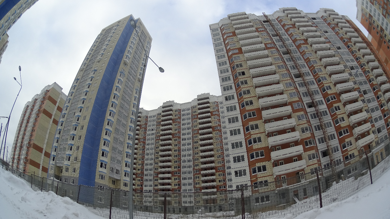 Рабочие живут в первых этажах. По ощущениям их не много. Не более 30 человек на всю стройку: