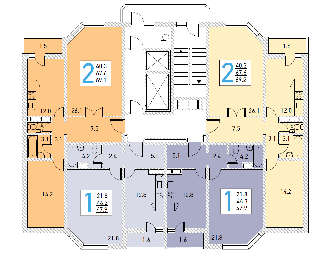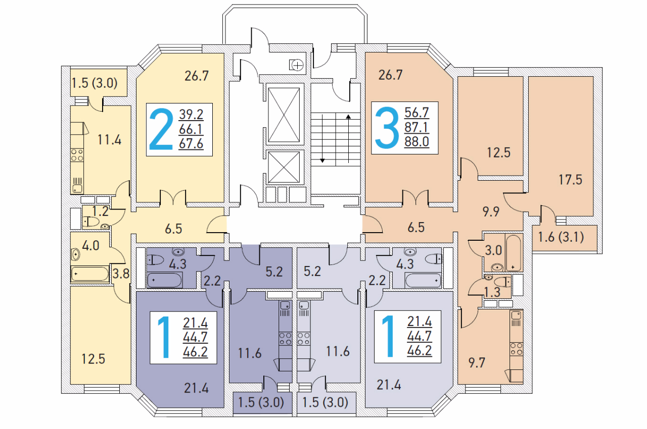 Так, да не совсем, дважды измеряли 2 -ку в 3 корпусе/3 подъезд - кухня 11,2, по выписке (оформили уже квартиру в собственность) площадь. 66,2. Плюс на схеме не указана кладовка в 2-ке в малой комнате она где то 1,70*0,53. Да и ванна аккурат 1.72*1.72 (не 4 квадрата). Так что схема весьма приблизительная