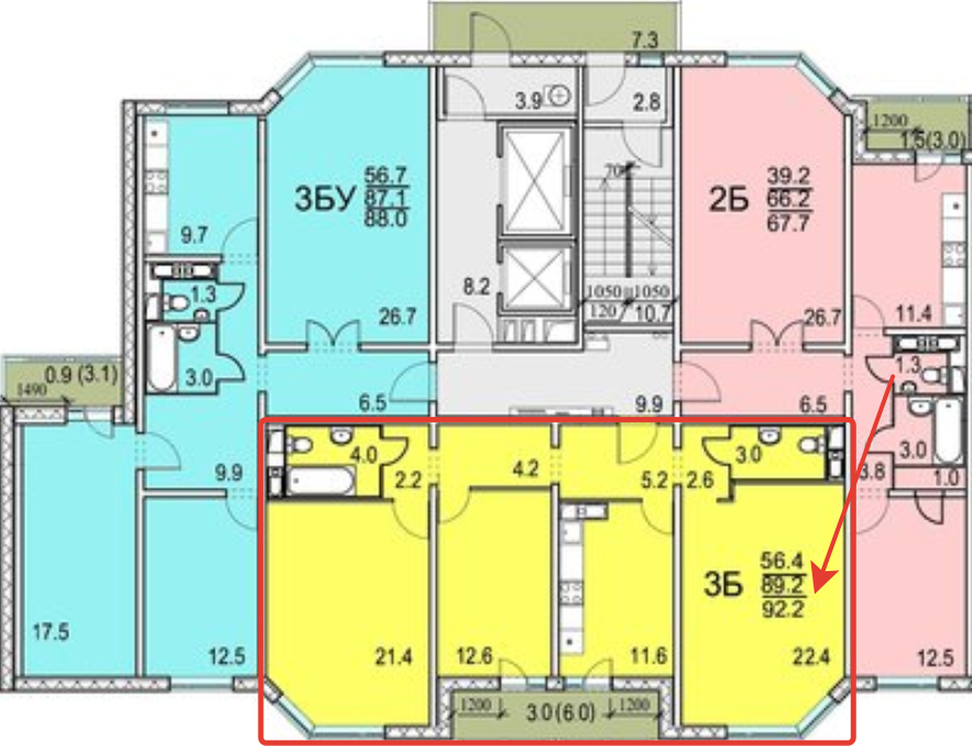 Два часа пытаюсь найти схему трешки на 89.2 м.кв.(3 корпус последний подъезд)