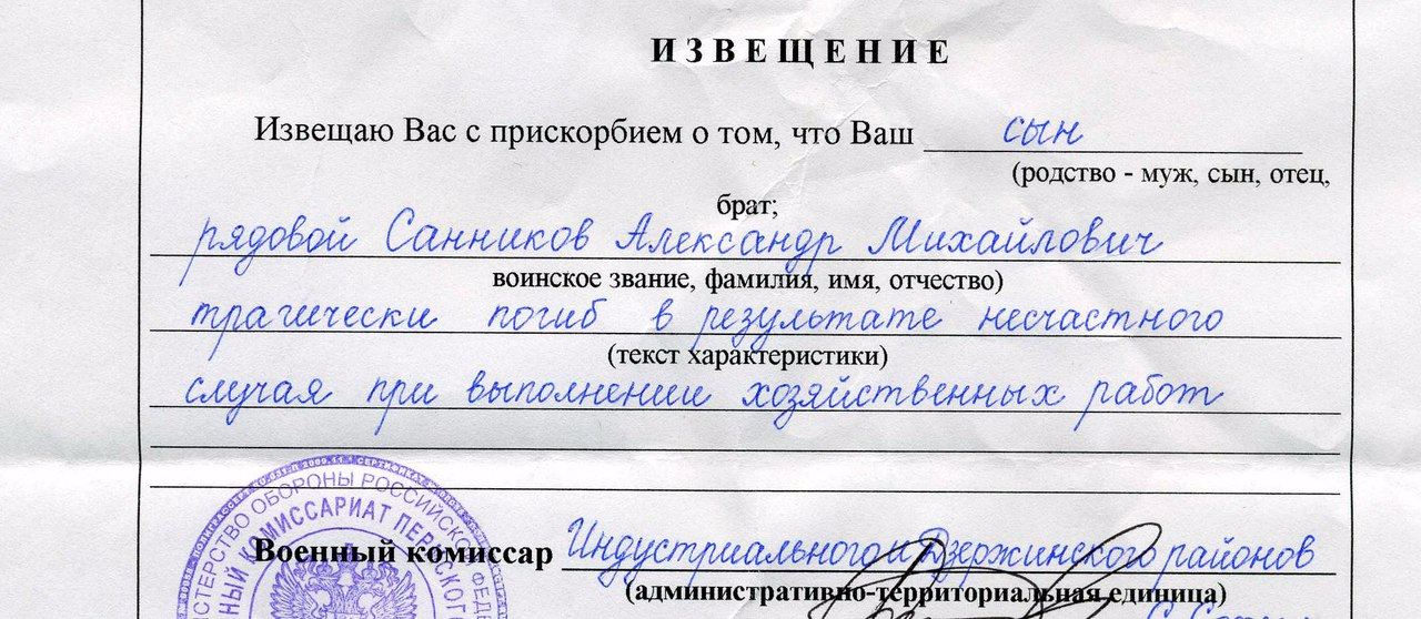 13 декабря 2016 года, погиб мой сын, солдат срочной службы, рядовой Санников Александр Михайлович 1997 г. р.