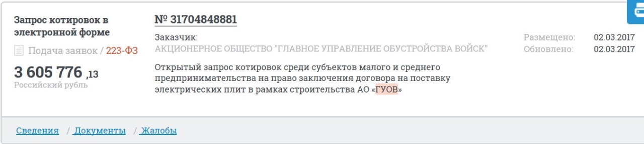 Открытый запрос котировок среди субъектов малого и среднего предпринимательства на право заключения договора на поставку электрических плит в рамках строительства АО «ГУОВ»