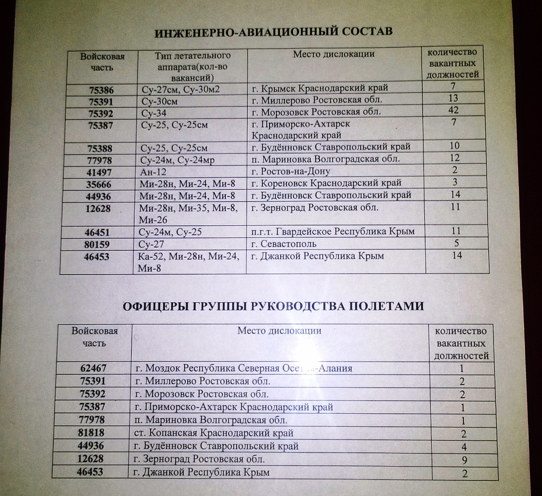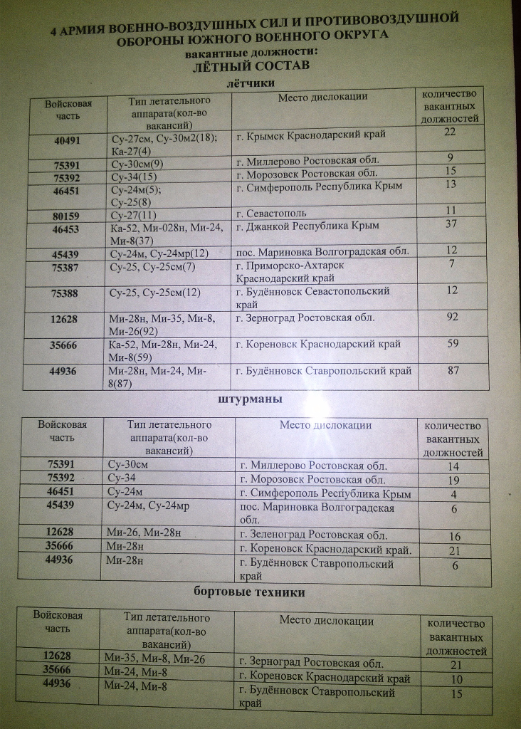 в войсковые части (Севастополь, Крым, ЮВО) войск ПВО ВКС РФ.