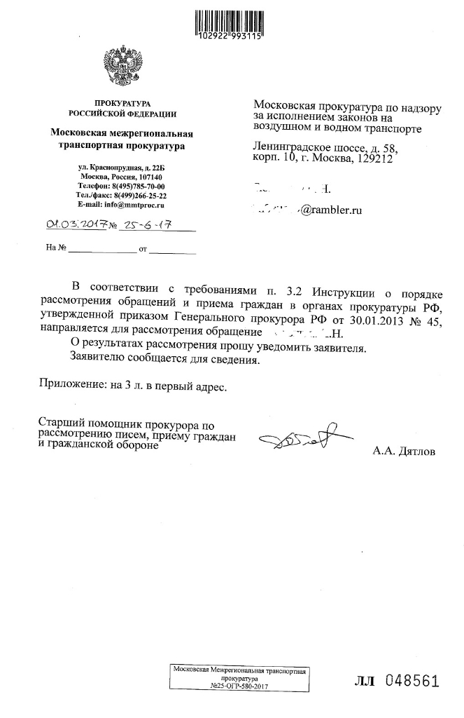 QR_BBPOST Накатал обращение на сайт Московской межрегиональной транспортной прокуратуры по поводу "...соответствия Жилищного строительства требованиям воздушного законодательства Российской Федерации... "
