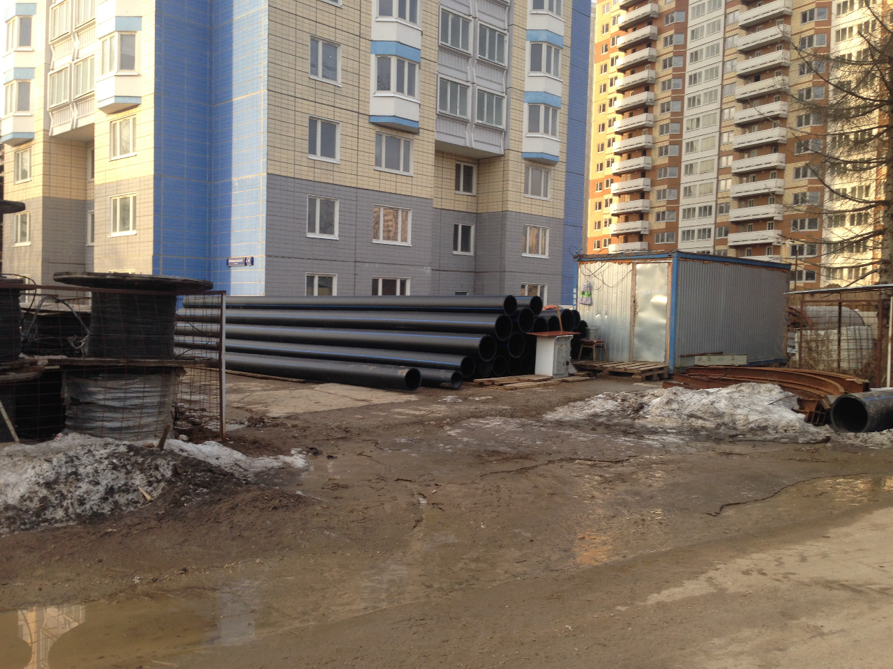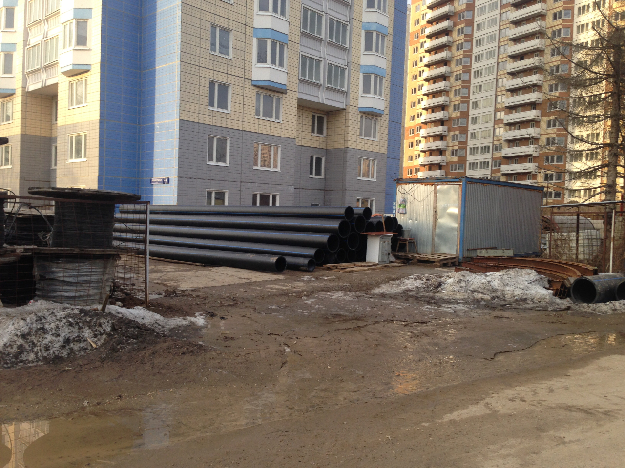 #35820Это оптика айфона, немного искажает. Основная труба такая же. Просто спереди труба меньшего диаметра- для подключения 20,23 корпусов к магистрали.NIK, раньше были разговоры, что для магистралки К-1 нужна труба диаметром 500-600 мм, а эта которая на Вашем фото вроде бы значительно меньшего диаметра? Ведь каналы пробиты диаметром около 1,0 метра. Вот справа от будки (на фото) вроде бы виден торец трубы значительно бОльшего диаметра. Разве на такая нужна? Или теперь все не так?Проезжал мимо ЛБ... У ИнжстройБетона первое в 2017 году поступление материалов - КАНАЛИЗАЦИОННОЙ (полипропиленовой) как я называю, может ошибаюсь, ТРУБЫ. На глаз минимум 300 метров