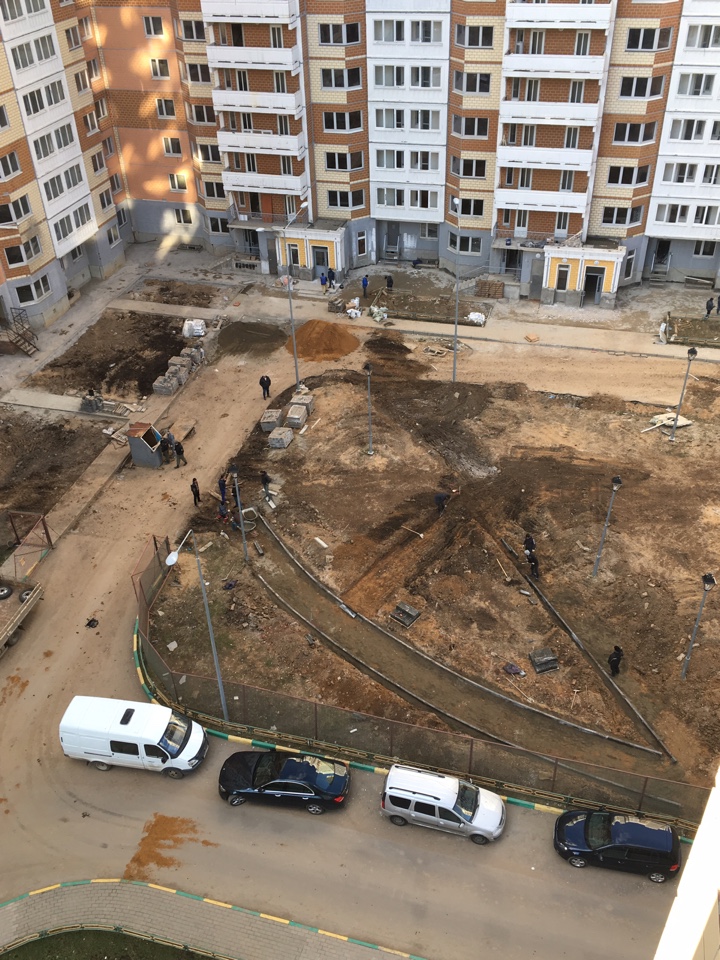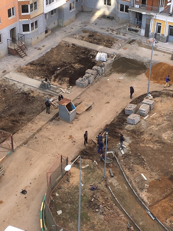 #37269У меня такое ощущение, что восстанавливают повреждённые места, на уже когда-то положенных дорожках. Но могу ошибаться. Работа по 15 идёт: территория все больше и больше приобретает правильные и четкие очертания. Техника работает. Сегодня обратила внимание, что реально шумно и не комфортно для жизни на стройкеПросто песня, начали плитку класть?